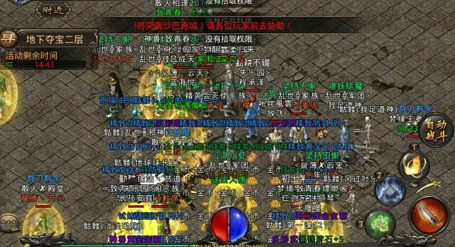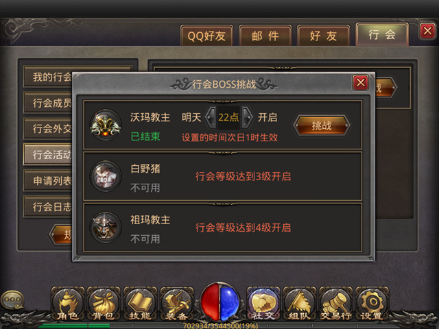 【行会BOSS】行会活动可申请挑战的行会BOSS也是获取50级紫装的又一途径。3级的行会就可以打2个BOSS,必定会有紫装或技能书掉落。只是行会财产,需要跟老大打好关系啊,咳咳···我什么都没说。