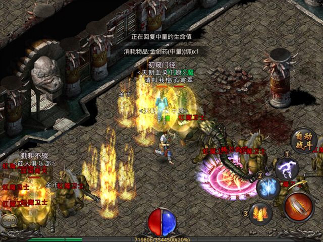 【焰火屠魔】“刷烟花,组起!”焰火屠魔副本是又一获取紫装的途径。烟花地图里的BOSS精英怪也会有几率掉落50级首饰、防具和装备。运气好的话,天之白野猪、天之虹魔教主、天之牛魔王等等都会带给你不期而遇的惊喜。组队刷烟花必定要有3个以上高法刷怪、战士引怪拉怪并负责警戒偷袭抢怪。70级的牛魔王也是个大肥肉哦!